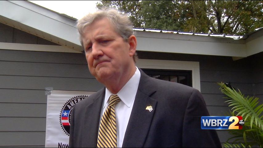 BATON ROUGE - Thursday, in a made-for-TV photo op, Senator John Kennedy worked the crowd at a home where volunteers renovated a flooded home and welcomed home the displaced family. The setting begged the question: will he run for governor?