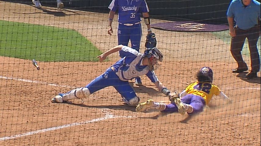 BATON ROUGE - The LSU softball team has had problems closing games all season, and they had it again today. The Tigers fall in game 3 to Kentucky 5-3, after blowing a 3-1 lead in the 7th. This is the second time this series that LSU has blown a 3-1.