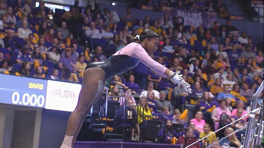 Freshman Kiya Johnson won her second all-around title the Tigers with a career-high 39.600. Her defining moment was a 9.975 in the anchor spot on floor to secure the win.