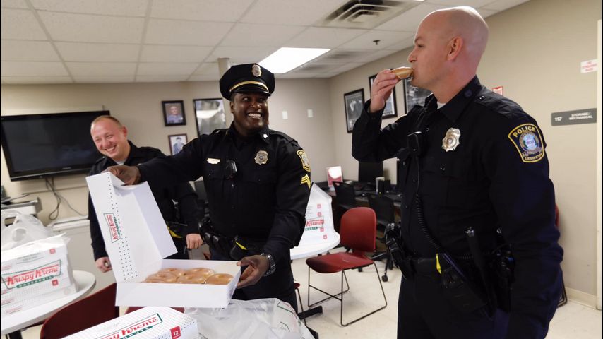 The photos went viral in a matter of hours, prompting a response from the donut distributor. And on Thursday, the officers got a full-on care package from the company.