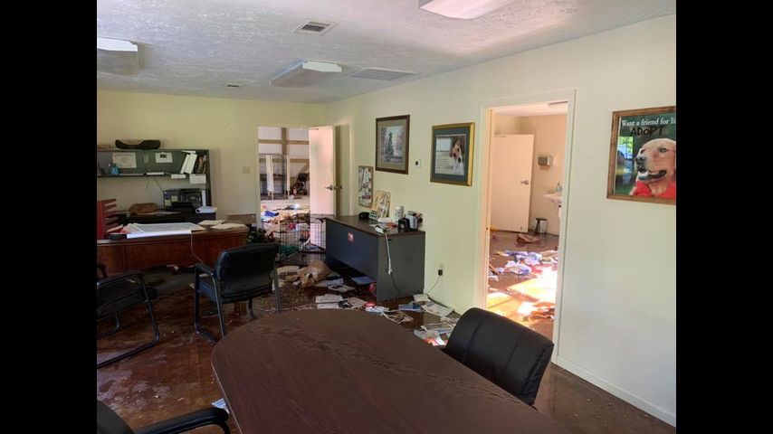 The Humane Society of Louisiana shared photos Wednesday showing the damage inside the DeRidder animal shelter. A spokesperson for the organization says the burglars destroyed equipment, stole a computer, removed security cameras, poured kerosene on pet food and let the dogs loose from their kennels.