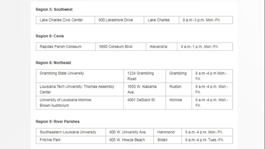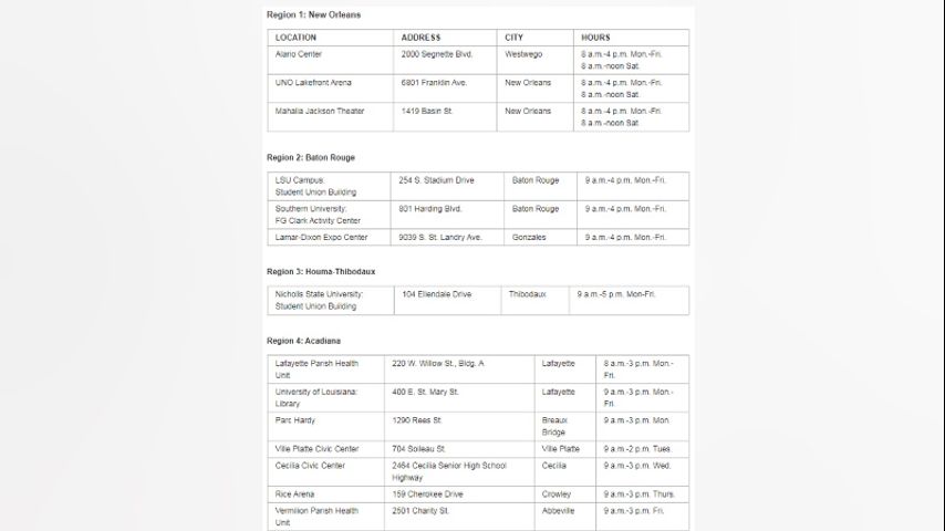 LDH also notes that no LANG-operated sites will be open in Region 7 (Northwest Louisiana).