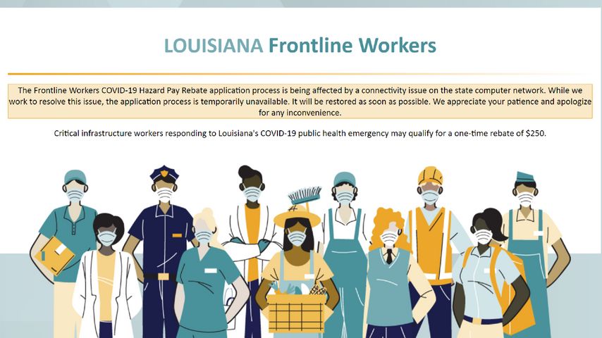 BATON ROUGE - Workers eligible for COVID-19 hazard pay have had trouble accessing the state's online application Wednesday, hours after the application went live.
