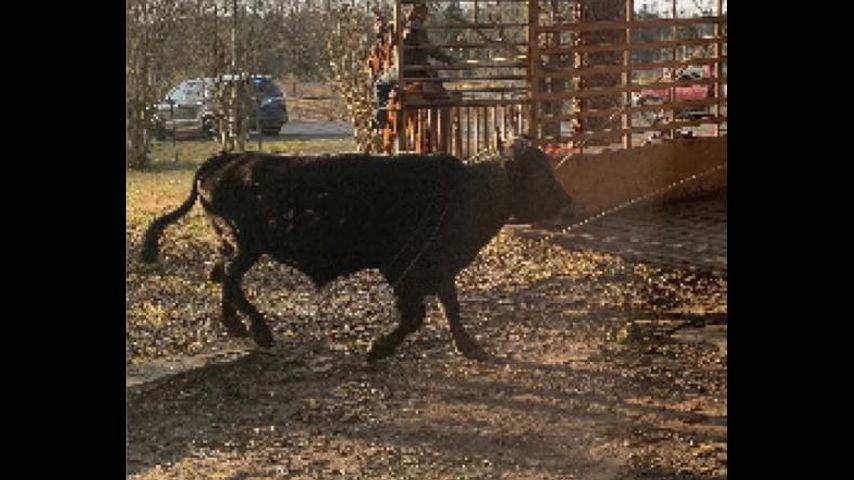 The department said cowboys with the Panola Livestock Auction eventually corralled the bull into a trailer, and the owner ultimately decided to have the animal auctioned off due to its "aggressive" behavior.