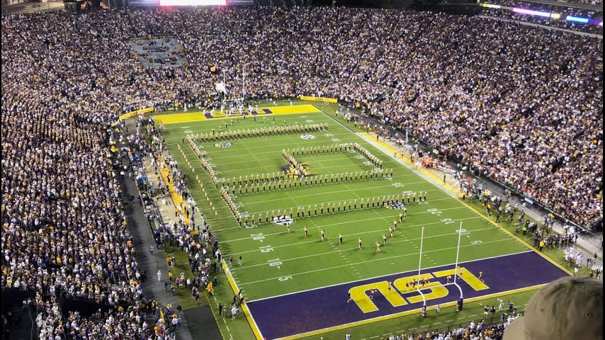Under a schedule that has varied little over the decades, teams warm up on the Tiger Stadium turf and then retire to their locker rooms about 20 minutes before the game. The LSU band typically takes the field about 16 minutes before the game and plays the national anthem and alma mater.