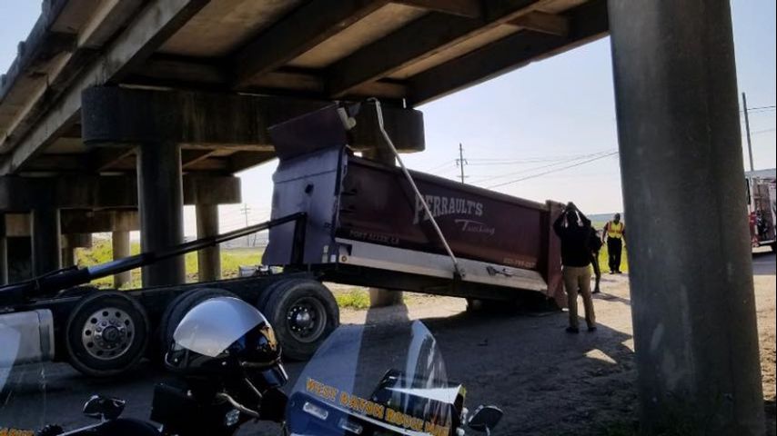 According to DOTD, the outside lane on LA 1 south will remain closed indefinitely after a truck, with its bed raised, collided with the structure and damaged one of the girders underneath the bridge.