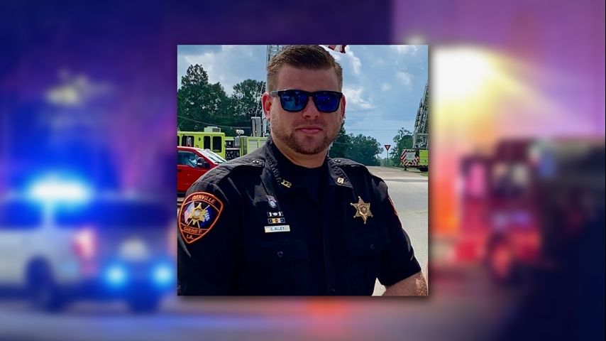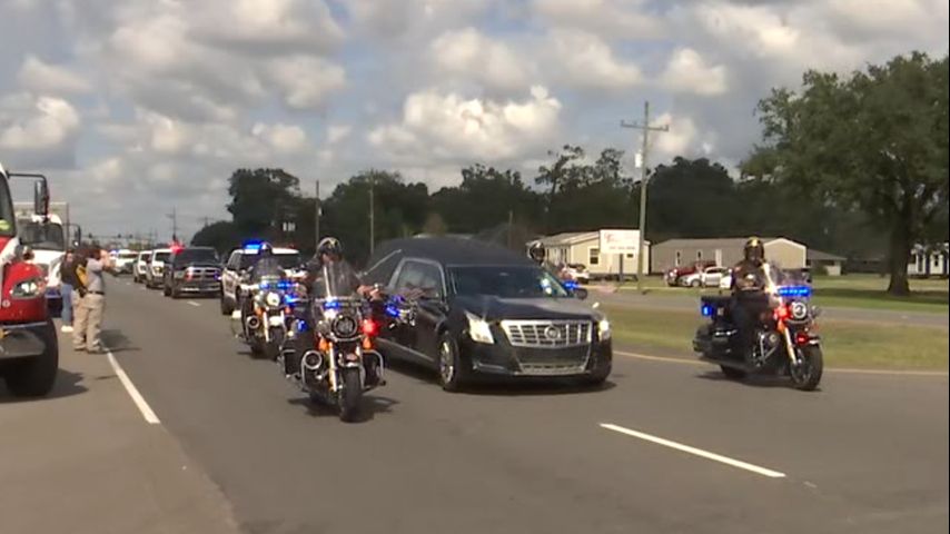 Law enforcement escort body of Deputy Charles W. Riley from Broussard to Gonzales funeral home