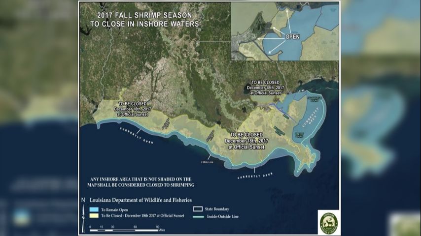BATON ROUGE- The Louisiana Department of Wildlife and Fisheries has announced that the fall shrimp season will close in a portion on state inside waters.
