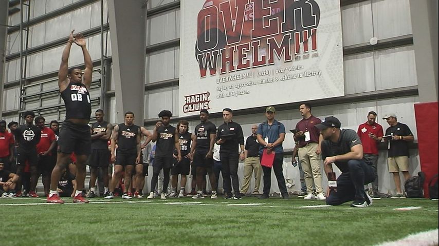 Twenty seven NFL teams showed up to the campus of UL Monday afternoon for the Ragin Cajuns' annual pro day. Among the eight players scheduled to workout was quarterback and Scotlandville product Levi Lewis. Louisiana's all time program leader in touchdown passes tested well in the broad jump, cone drills, shuttle and 40 yard dash while also putting on a display during his throwing workout.