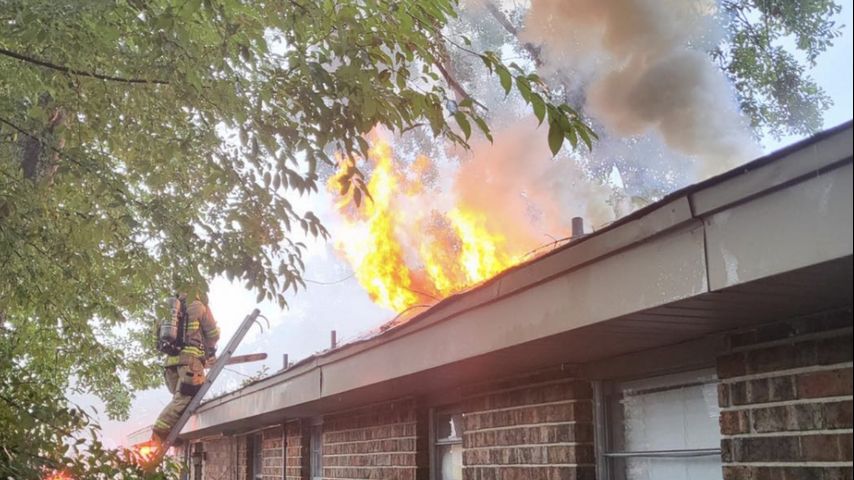 Video showed plumes of smoke coming from the roof of the home as first responders worked to get the fire under control.