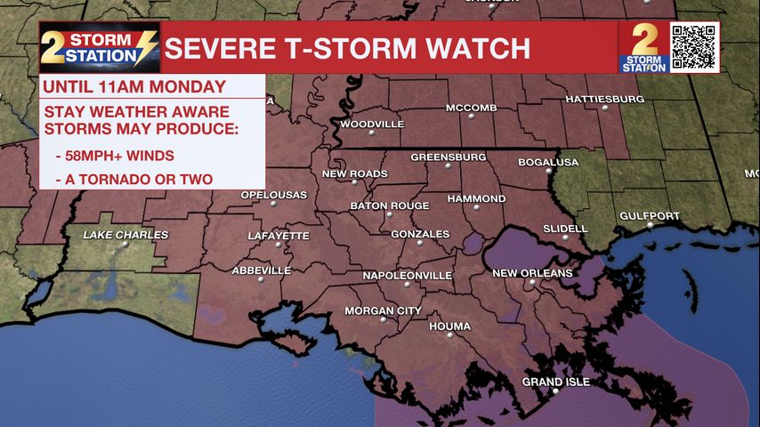 BATON ROUGE - Here is a list of schools experiencing closures and delayed start times amid severe weather that moved through south Louisiana Monday morning.