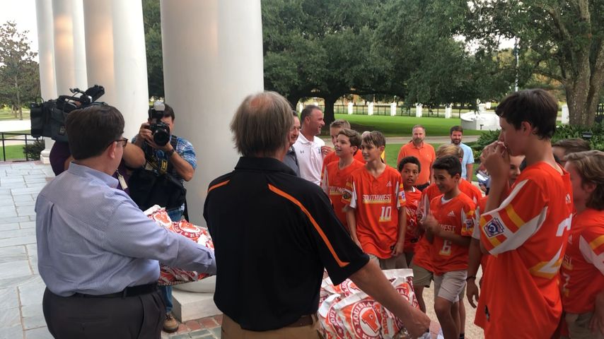 Governor surprises Little League champions with Popeyes chicken sandwiches