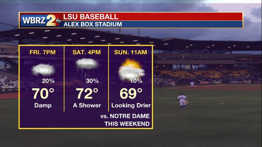 LSU Baseball: Not a bad looking forecast for opening weekend at Alex Box Stadium; this time of year can make for some squirrely baseball conditions but overall this weather looks decent. It will be mostly cloudy and some spotty showers are possible, but there is no reason to believe any game will be cancelled. In fact, a brief delay seems like the worst-case scenario. Temperatures will be around 70 degrees through each game. Since it may be a little damp, you could take a light jacket just in case.