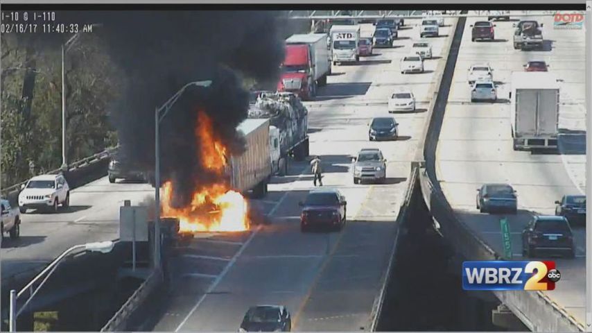 BATON ROUGE - Traffic slowed to a crawl around lunchtime Thursday after an 18-wheeler caught fire and the cab exploded on I-10.