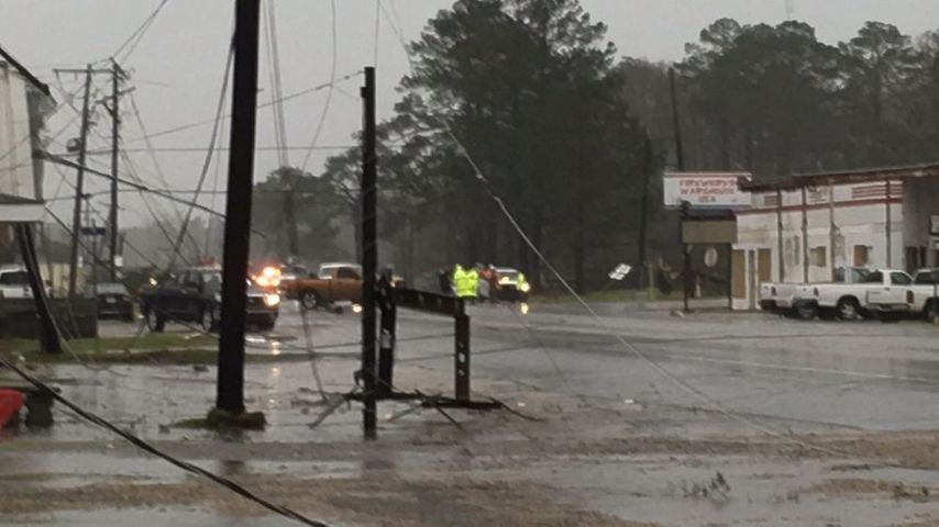 Several incidents have been reported in connection with the winds including a vehicle with a light pole on top on a railroad line, a truck blown over blocking 190 and a tree down on a home in Walker.