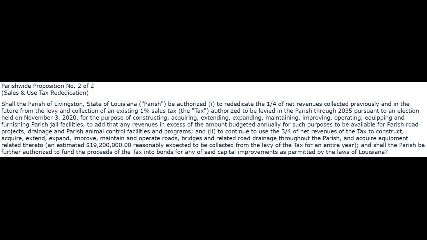 LIVINGSTON - For Livingston Parish residents, there are two proposals on the ballot that parish officials said are needed to fund vital programs in the parish.