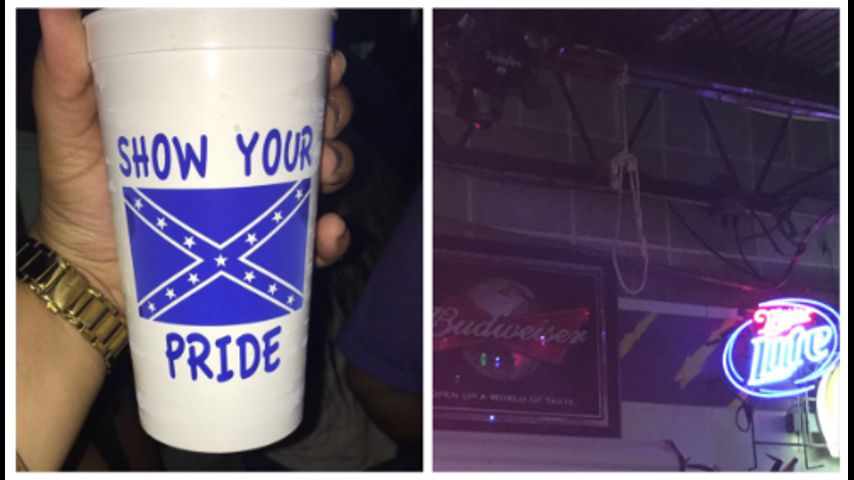 A tweet posted Sunday showed the alleged noose hanging in Reggie's, a popular bar near LSU's campus. That same post also called attention to a cup at the business which featured the phrase "show your pride" alongside a blue Confederate flag.