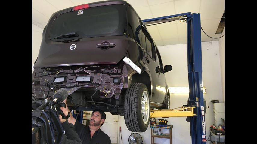 At his body shop, Chris Medine can clearly see the problems plaguing the owner of a car he's repairing. It's been repaired before, but not to manufacturer standards. That's why he's got the car, and is tasked with trying to fix another shop's mess. The driver of the car went to a body shop she was referred to by her insurance company, Progressive. Once the car was fixed, Medine said the driver's problems cropped up. She then took the car to Medine's Collision Center. When Chris Medine dismantled the entire back end of the car, he uncovered it wasn't fixed right. He's int he process of re-repairing the repair.