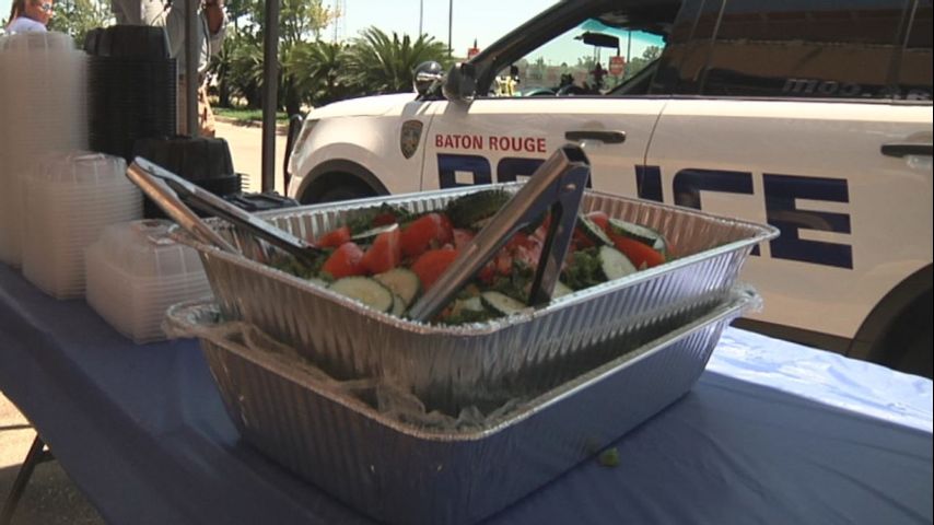 Several Baton Rouge Police Officers lined up for the free lunch, excited to see Monjunis was serving.