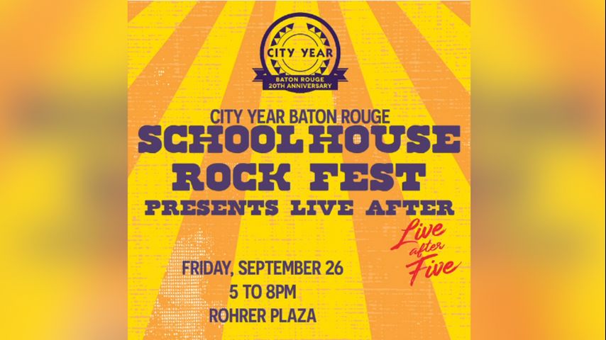 City Year Baton Rouge, in partnership with local concert series Live After Five, will host its School House Rock Fest from 5 to 8 p.m. on Sept. 26 at Rhorer Plaza.