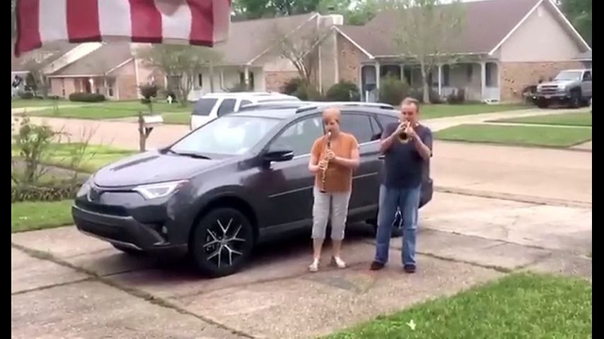 "I said okay, Tim grab your trumpet. I'm gonna get my clarinet, we're gonna do a driveway visit," the grandmother of two said on Friday afternoon via a facetime interview.