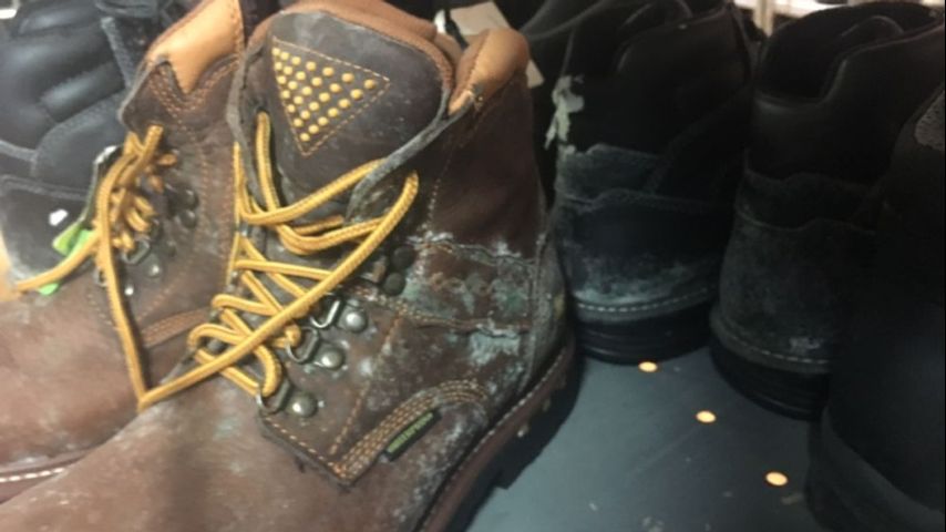 As fans run constantly to get the nauseating smell out, Waters and a team of workers are selling items like boots that would have sold for nearly $150 for half price.