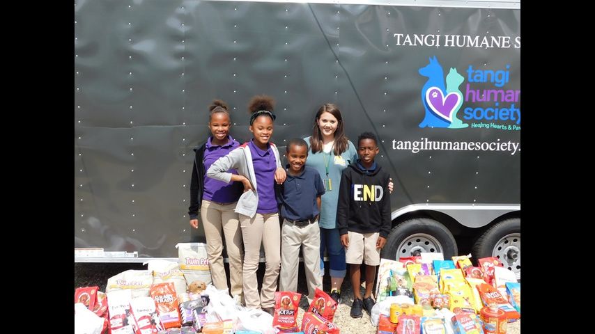 On Wednesday, the kids donated the food to the Tangi Humane Society which currently houses 6 horses, 29 dogs, 4 cats and one pig. The students hope that their efforts will lead to the adoption of some of these animals.