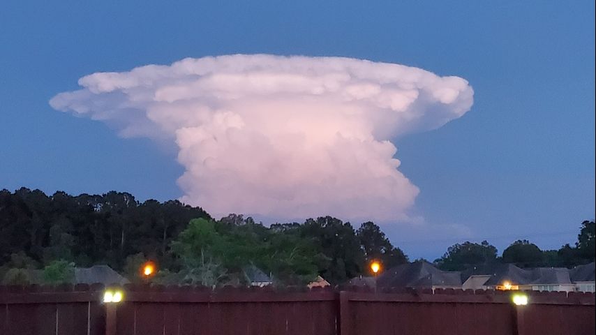 Storm Station radar captured that lone storm cell that formed over Lake Maurepas just after 8pm on Thursday. With the sun setting, those west of the cloud in East Baton Rouge, Livingston, and Ascension parishes saw a particularly well lit cloud and pictures poured into WBRZ email inboxes.
