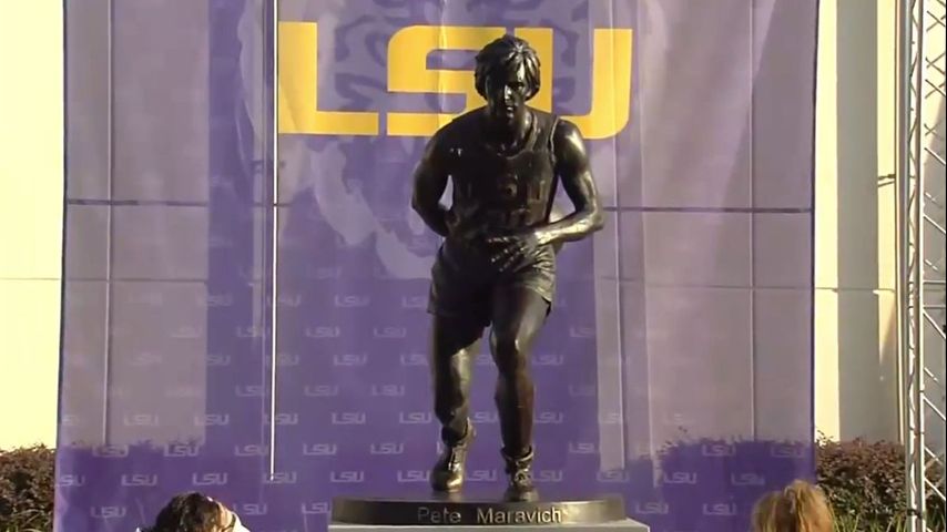 LSU legend and NCAA all-time scoring leader Pete Maravich was honored at LSU for show-stopping play with a statue in front of the LSU practice facility on Monday night.