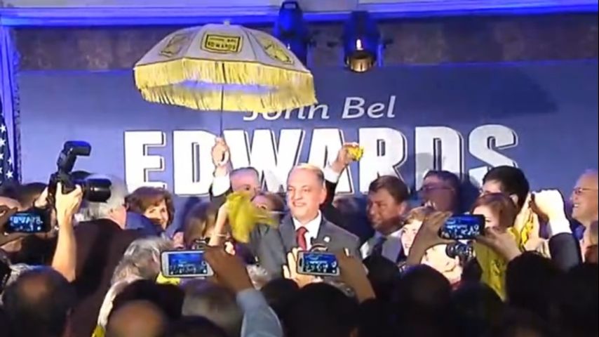 Edwards' camp in New Orleans erupted into cheers and song, singing "Who Dat Say They Gonna Beat John Bel." Edwards also released a statement thanking his supporters and promising to work with other state leaders to solve Louisiana's problems.
