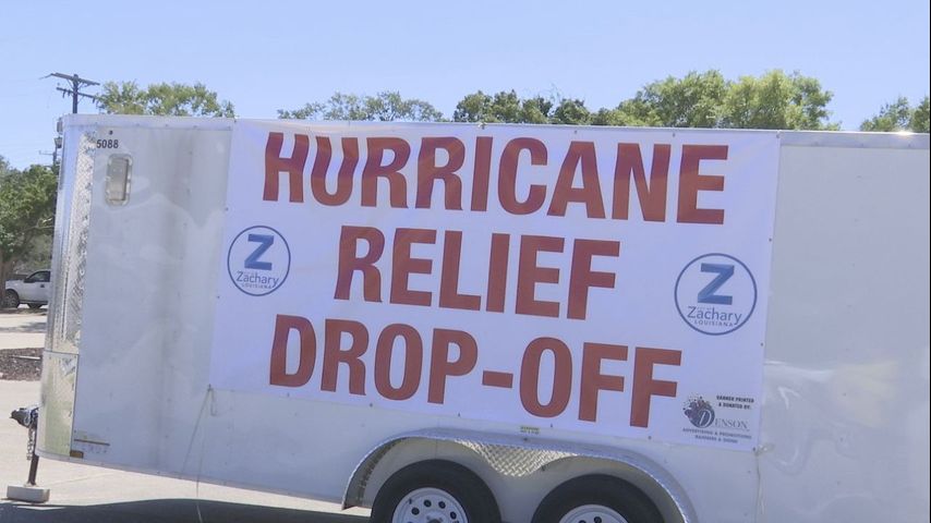 In the town of Zachary, trucks and trailers are set up to take in drop-off donations for those affected by Helene.