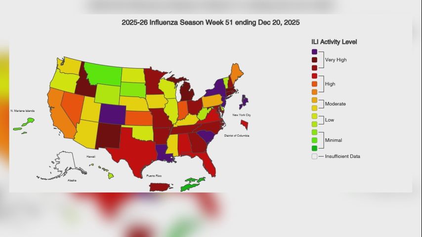 BATON ROUGE - According to the CDC, five states in the US have the highest numbers of flu cases, including New York, New Jersey, South Carolina, Colorado, and Louisiana.
