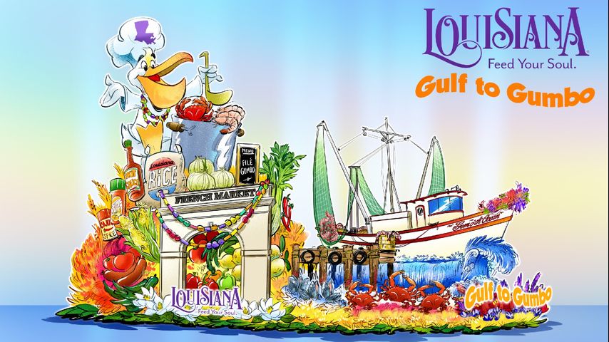 This year's float theme is "Gulf To Gumbo," highlighting the State's seafood industry.