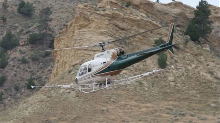 The helicopters involved in the surveys record Earth's magnetic field with onboard sensors to detect oil well casings.