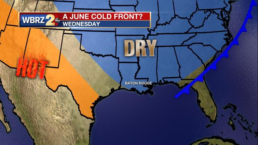 An unusual June cold front will allow lower temperatures and humidity for most of the week. You should really feel some relief in the mornings.