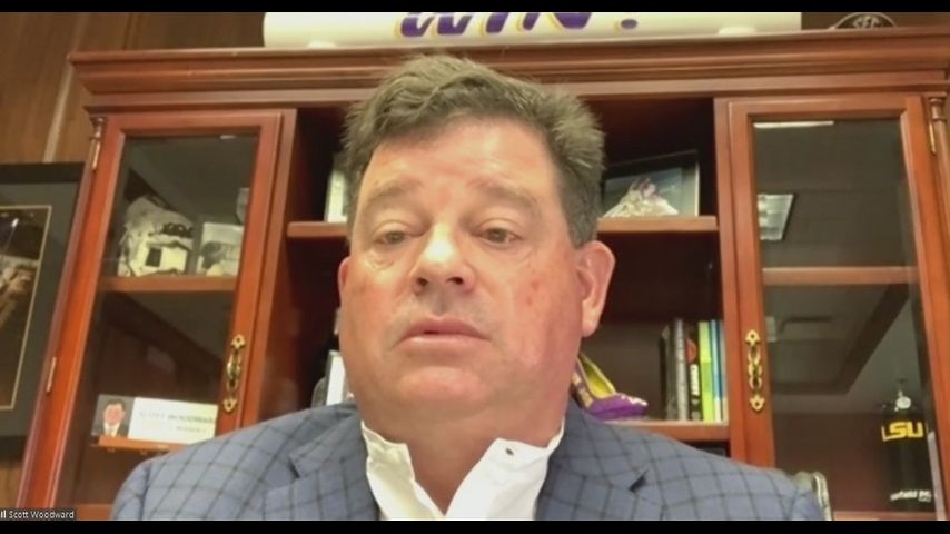 BATON ROUGE – One day after LSU head football coach Ed Ogeron announced “most” of the LSU football team already had COVID-19, Athletic Director Scott Woodward said he may have shared a little too much information.