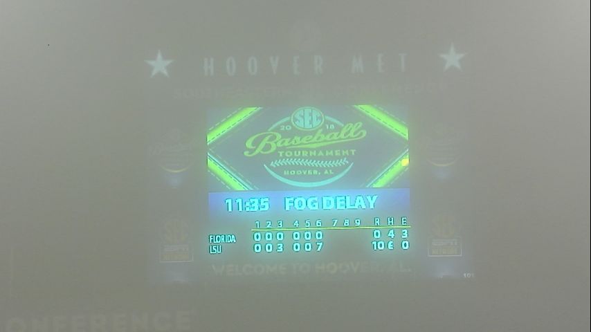 HOOVER, ALABAMA - The LSU Tigers were cruising to a potentially 10-0 run-rule victory over Florida on Friday night when the SEC Commissioner Greg Sanky halted play due to heavy fog that descended on the playing field.
