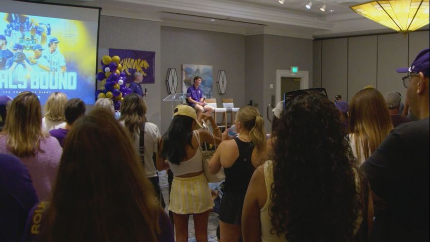 OMAHA, Neb. - LSU baseball earned a couple of off days after beating Arkansas 6-5 Wednesday night in walk off fashion. They celebrated with Tiger fans on Thursday with a pep rally at the team hotel.