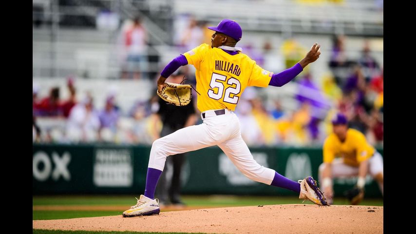 BRYAN-COLLEGE STATION, Texas – Senior right-hander Ma'Khail Hilliard limited Texas A&M to two runs in seven innings Saturday, and LSU smashed three homers in the third inning as the Tigers posted an 8-2 victory over the Aggies at Blue Bell Park.