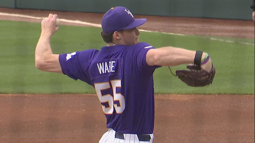 Starting LSU pitcher Conner Ware took home the win with three innings pitched allowing no runs on no hits while walking one and striking out two.