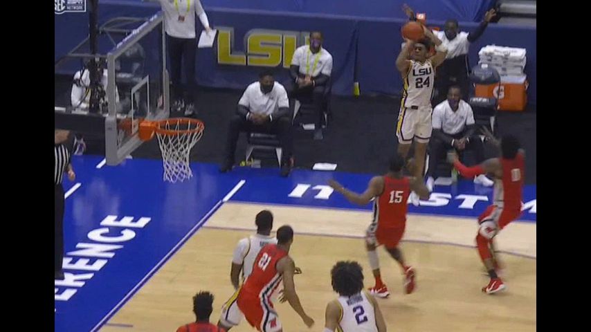 NASHVILLE, Tenn. -- Trendon Watford scored 24 points and Darius Days added a double double, as the LSU men's basketball team defeated Ole Miss in the SEC Tournament quarterfinal late Friday, 76-73.