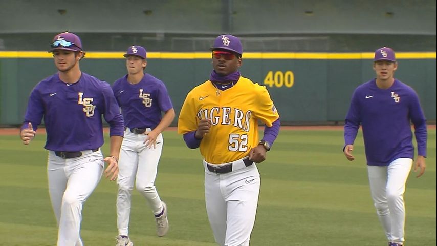 LSU starting pitcher Ma'Khail Hilliard fired a hitless first inning and the Tiger bats responded with a big Gavin Dugas two-run home run in the bottom of the first.