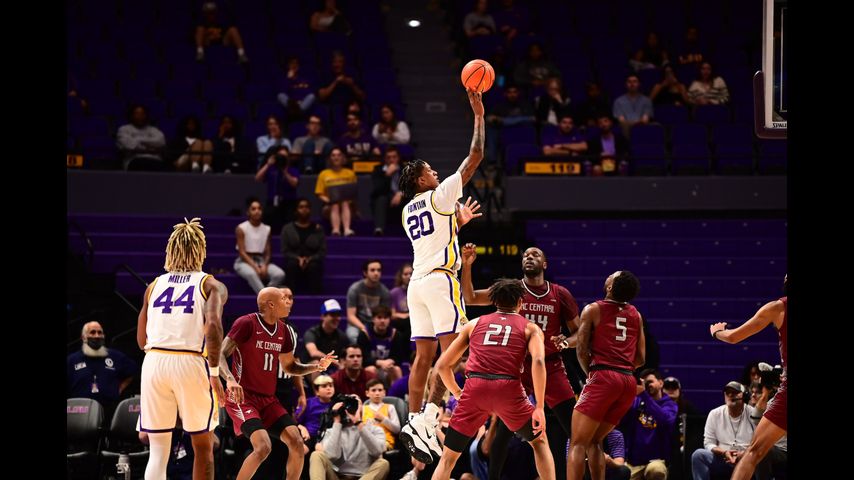 NCCU tied the game at 23-23 with 6:24 to go before KJ Williams dunked off an Adam Miller pass and then went to the free throw line for three makes after getting fouled on a distance attempt. Then it was Fountain and KJ Williams again that pushed the LSU lead to 32-23 with 3:52 to go in the first half.
