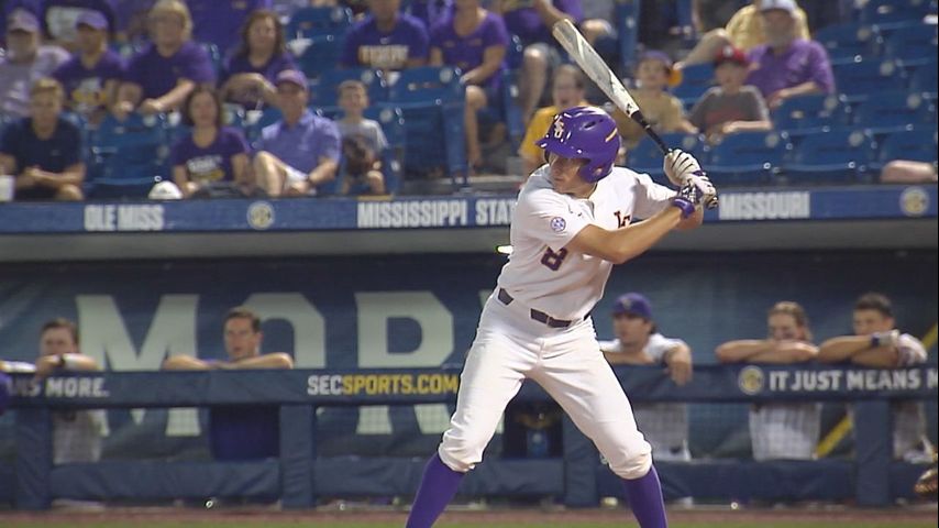 With the bases loaded, Jake Slaughter got plunked and Nick Coomes delivered a deep fly ball to centerfield to drive in another to give LSU a 6-4 advantage going to the 8th.