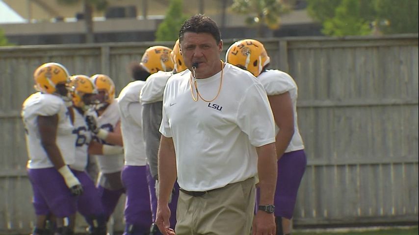 Baton Rouge, LA - "Camp is a wonderful time. We want to create competition at every position. We want to put guys under pressure, so what we are going to do is treat this like a NFL preseason camp."