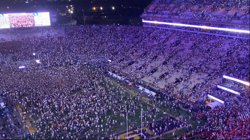 The Tiger faithful rushed the field under the tint of purple and gold lights to cap off the night the program celebrated 100 years of Tiger Stadium.