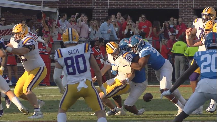 The Rebels defense entered the game with the 109th ranked rush defense, but was more than up to the task as they harassed LSU quarterback Max Johnson who turned the ball over three times in the game, two fumbles and an interception.