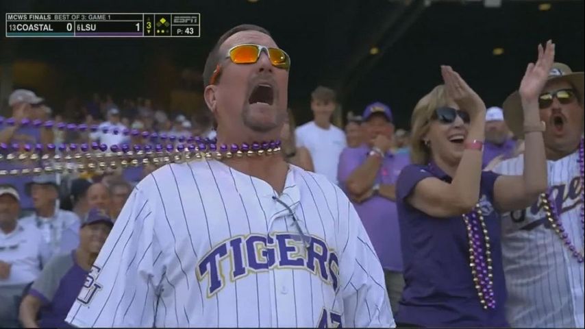 LSU fan goes viral for bead-swinging celebration in Omaha