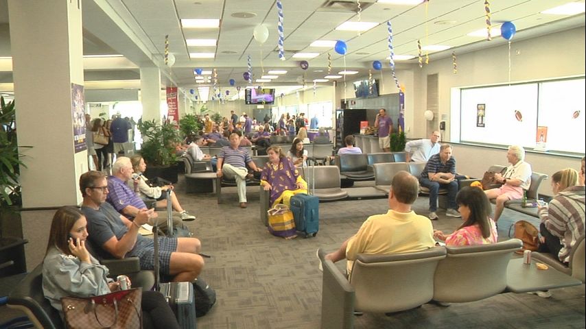 BATON ROUGE - A flight full of LSU fans took off from Baton Rouge Metro Airport this morning, and flyers were greeted with a tailgate before they boarded.