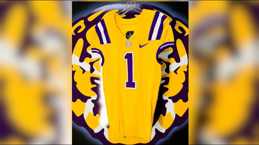 LSU's Twitter account showed off gold jerseys with purple numbers for their next matchup.